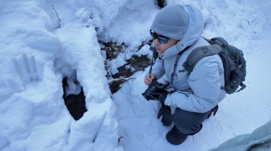 深入雪谷腹地,采風團一行涉入尚未冰封的溪水,手扶古木,沿溪而行。“這種體驗太美好了,在滿是積雪的森林深處行進,感覺太奇妙了!泵绹W(wǎng)絡(luò)博主于中美驚嘆道。