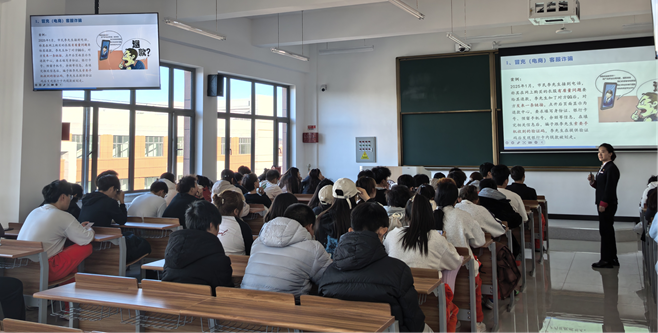 活動現(xiàn)場,臨河街支行的工作人員結合高校校園詐騙的高發(fā)特點,以通俗易懂的語言為師生們帶來了一場干貨十足的反詐宣講。宣講環(huán)節(jié)中,工作人員首先從“什么是電信網(wǎng)絡詐騙”切入,系統(tǒng)講解了電信網(wǎng)絡詐騙的定義、常見類型及隱蔽性、迷惑性特點,讓師生們對這類違法犯罪行為建立起清晰認知。隨后,通過“以案說詐”的形式,工作人員選取了近年來高發(fā)的校園貸、刷單返利、冒充老師同學借錢、虛假購物退款等典型詐騙案例,深入剖析了詐騙分子的作案手法、話術陷阱以及受害者的受騙心理,用真實案例敲響安全警鐘,讓師生們直觀感受詐騙的危害性。