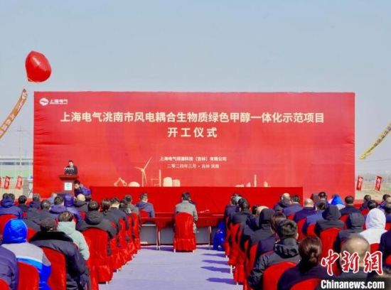 3月30日,中國(guó)首個(gè)規(guī);G色甲醇項(xiàng)目——上海電氣洮南市風(fēng)電耦合生物質(zhì)綠色甲醇一體化示范項(xiàng)目在吉林洮南正式開工。洮南市委宣傳部供圖