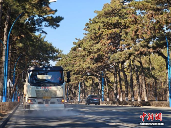圖為洗掃車正在進行巡回作業(yè)。金喬  攝