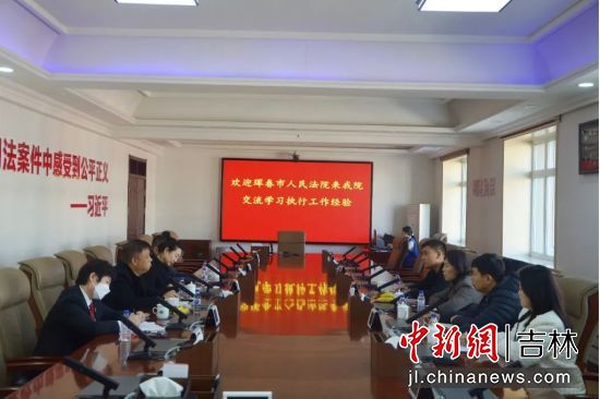 近日,琿春市人民法院一行四人到農(nóng)安縣人民法院執(zhí)行局考察調(diào)研。農(nóng)安法院黨組成員、執(zhí)行局長周林海以及執(zhí)行局、審管辦相關(guān)人員參加調(diào)研。