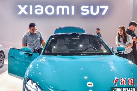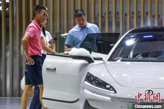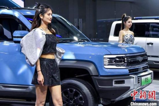 9月13日,海南?,車模助陣海南金秋車展。當(dāng)日,因超強(qiáng)臺風(fēng)“摩羯”而兩度延期的2024海南金秋車展暨智能網(wǎng)聯(lián)新能源車展在?谂e行。作為臺風(fēng)災(zāi)后海南的首場車展,本次展出面積達(dá)5萬平方米,共有近百個汽車品牌參展,其中新能源車型占比70%。中新社記者 駱云飛 攝