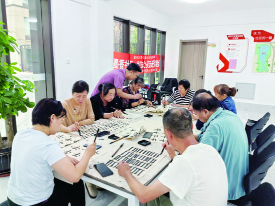 “社區(qū)為老年人提供了休閑娛樂的場(chǎng)所,更提供了適宜老年人個(gè)性化需求的學(xué)習(xí)平臺(tái),讓我們享受到理想型的老年生活!泵闲穆f(shuō)。如今,得益于社區(qū)提供的學(xué)習(xí)平臺(tái),孟心蔓成為社區(qū)書法課堂的固定學(xué)員,每周一、周三、周五下午,她都與社區(qū)老年居民共赴課堂,在墨香中享受書法帶來(lái)的快樂。