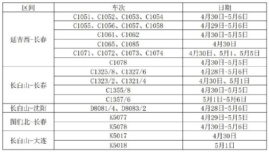 記者從延吉車務段了解到,今年“五一”假期鐵路運輸期限自4月29日至5月6日止,為期8天。為滿足廣大旅客出行需求,該段科學調(diào)配運力,優(yōu)化列車開行方案,計劃加開長春、沈陽等方向旅客列車14.5對,其中普速列車2對、高鐵列車12.5對。