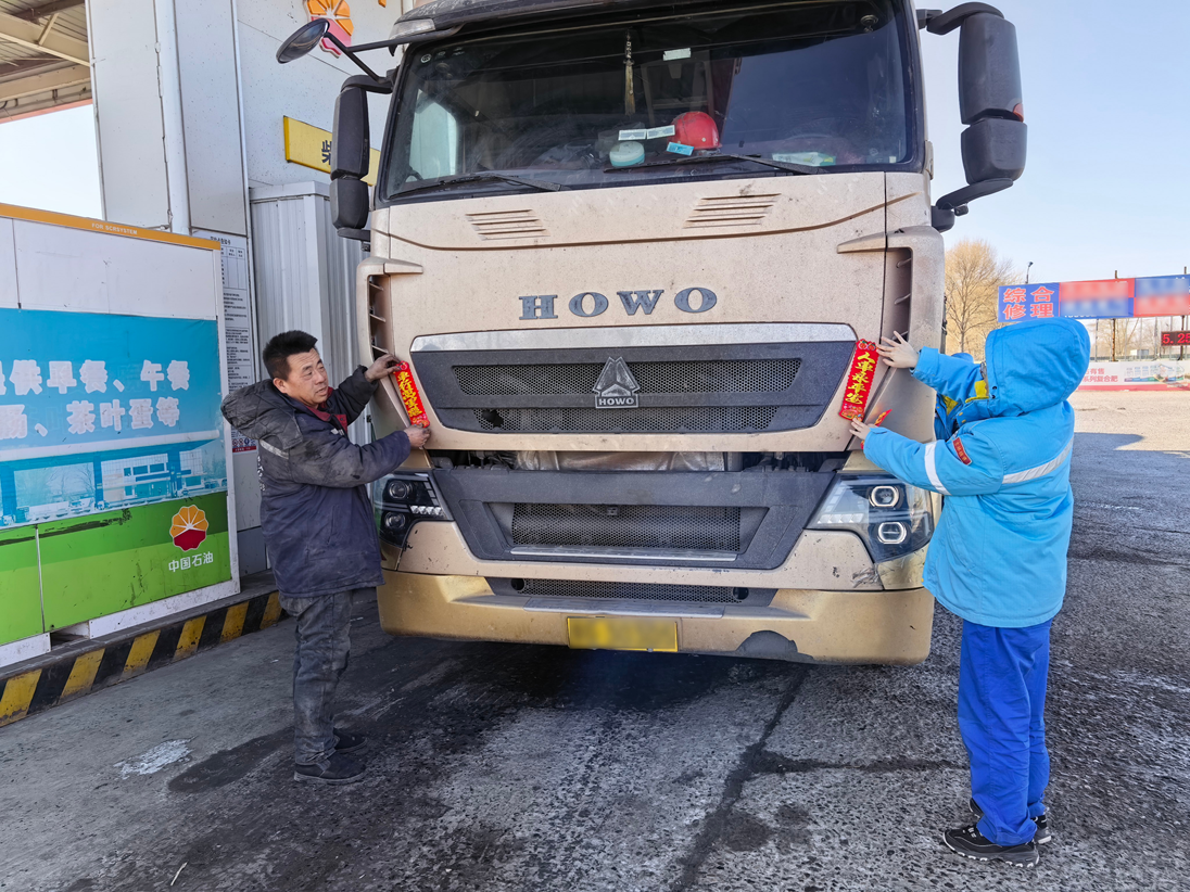 吉林市分公司磐石煙筒山站內(nèi),紅燈籠錯(cuò)落懸掛,節(jié)日商品琳瑯滿目,休息區(qū)姜茶暖香四溢。“師傅,您跑長(zhǎng)途返鄉(xiāng),胎壓有點(diǎn)偏低,需要幫忙調(diào)整嗎?”加油員一邊加油,一邊細(xì)心提醒,細(xì)致服務(wù)贏得司機(jī)連連道謝。