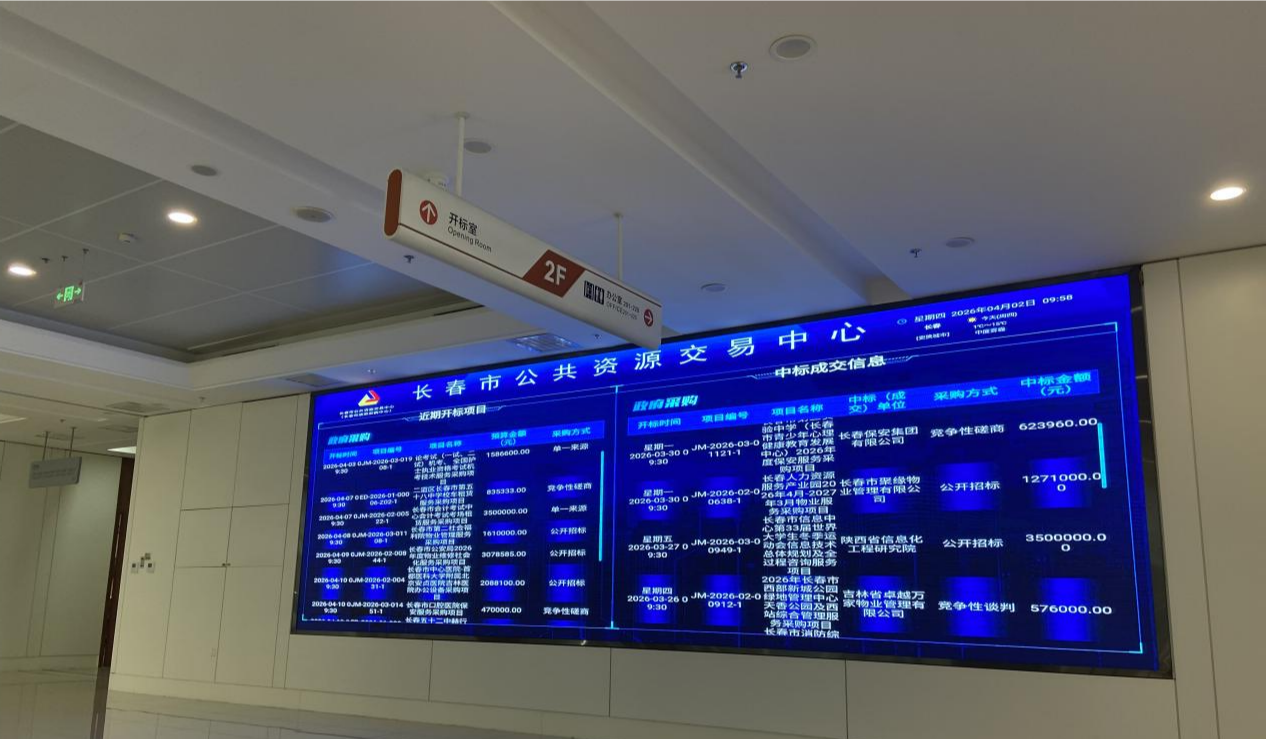長春市公共資源交易中心LED屏幕實時顯示政府采購招標(biāo)信息
