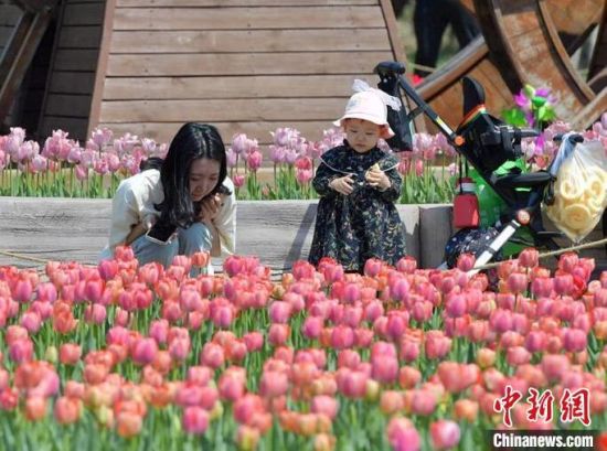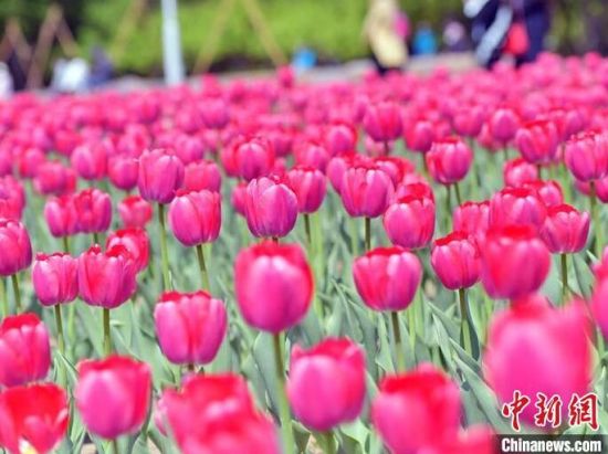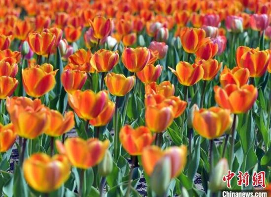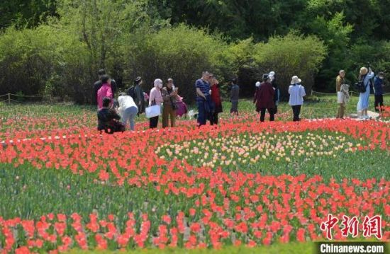 40余萬株郁金香迎來盛花期。 40余萬株郁金香迎來盛花期,艷麗奪目。 40余萬株郁金香迎來盛花期,艷麗奪目。 市民在公園賞花。 市民在公園賞花拍照。