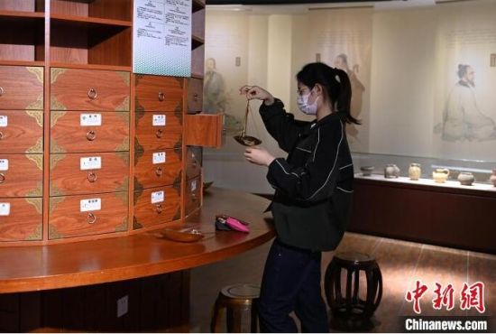 民眾在體驗(yàn)按方抓藥的過程。 張瑤 攝
