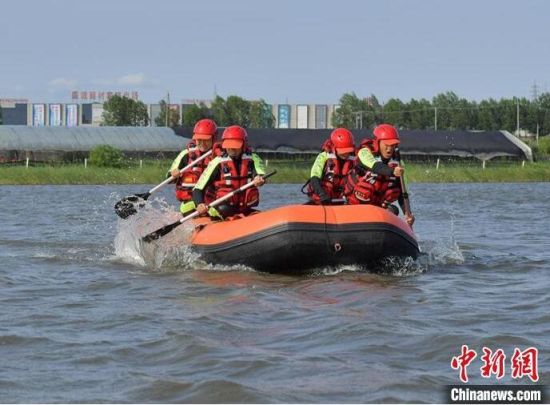 森林消防在水面上進(jìn)行無動力劃艇。