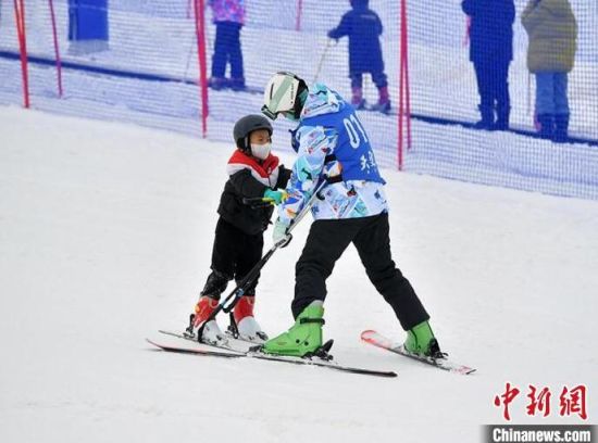 11月26日,在位于吉林遼源的天陸山滑雪場(chǎng),很多小朋友在家長(zhǎng)的帶領(lǐng)下,樂享冰雪運(yùn)動(dòng)。