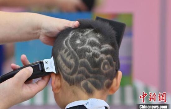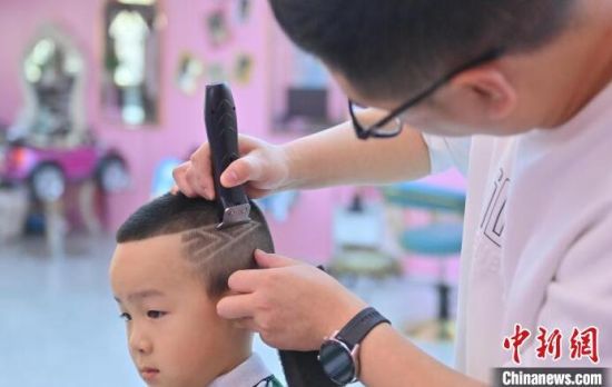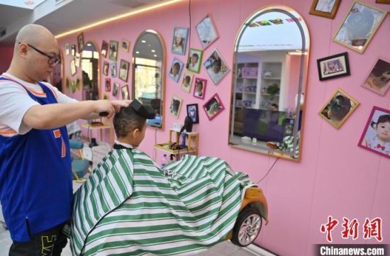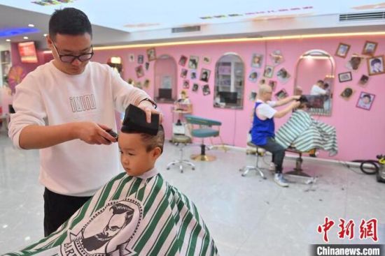 理發(fā)師在為孩子“剃龍頭”。張瑤 攝