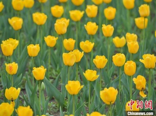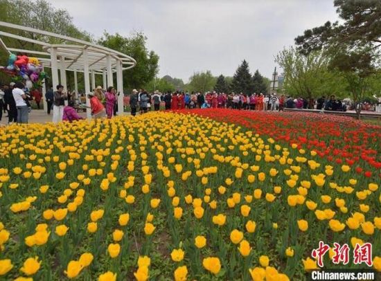 公園內(nèi)的郁金香迎來盛花期。