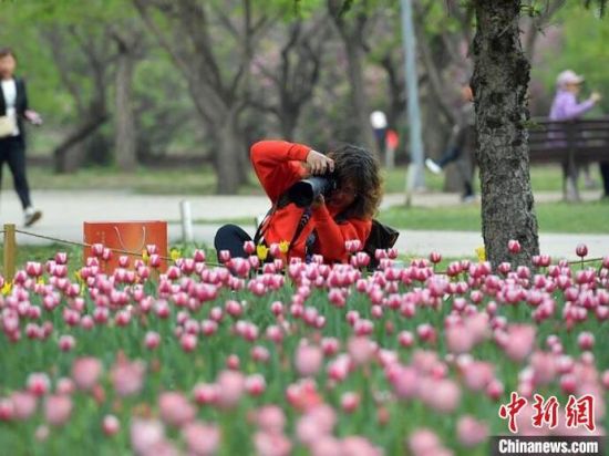 5月6日,吉林長春,民眾正在公園內(nèi)打卡拍照。初夏時節(jié),長春公園中的50萬余株郁金香迎來盛花期,吸引大量民眾前來賞花。(完)