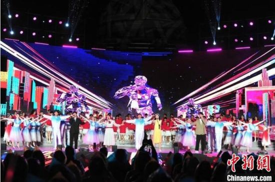 大學(xué)生在表演歌舞《追夢(mèng)人》。