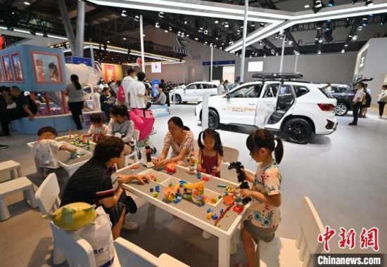 7月13日,在第21屆長(zhǎng)春國(guó)際汽車博覽會(huì)上,小朋友在淘氣堡玩耍。本屆長(zhǎng)春汽博會(huì)有全球124個(gè)品牌的展車亮相,現(xiàn)場(chǎng)設(shè)置了許多游戲體驗(yàn)項(xiàng)目,吸引小朋友們參與。 (中新社記者 張瑤/攝)