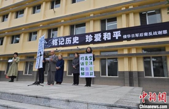 9月14日,5名侵華日軍后裔來到吉林省公主嶺市站前小學,替他們曾作為侵華日軍的父輩向中國人民謝罪。其中,76歲的黑井秋夫,其父侵華期間曾在公主嶺市駐軍,在當?shù)胤赶聡乐氐膽?zhàn)爭罪行。圖為侵華日軍后裔在謝罪現(xiàn)場流下淚水。(中新社記者 張瑤 攝)
