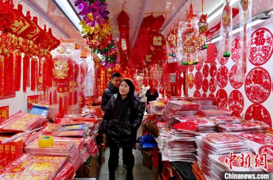 1月10日,吉林長春,市民在選購蛇年新春飾品。隨著農(nóng)歷春節(jié)的臨近,燈籠、春聯(lián)、年畫、福字等新春飾品逐漸熱銷。中新社記者 張瑤 攝