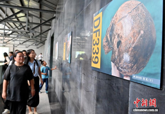 8月7日,記者拍攝的東北淪陷時(shí)期遼源礦工墓陳列館的綜合陳列館——遼源礦工紀(jì)念館。該陳列館是日本侵華期間強(qiáng)占東北、掠奪資源、殘害中國(guó)礦工的重要罪證!熬乓话恕笔伦兒螅湛茉诖睡偪耖_采煤礦14年,導(dǎo)致8萬至10萬礦工慘死。如今,這片占地6萬平方米的遺址內(nèi),197具完整遺骸和20余具零散遺骨靜靜陳列,無聲控訴著侵略者的罪行。中新社記者 張瑤 攝