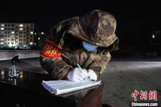 中新網(wǎng)通化1月28日電 (蒼雁 孫博妍)入夜的通化月光皎白,李曉東望著對(duì)面窗里亮起的燈,安心不少!澳鞘俏壹遥驮诳c(diǎn)對(duì)面!痹诜酪咭痪駐守半個(gè)月,李曉東很惦記家里人。