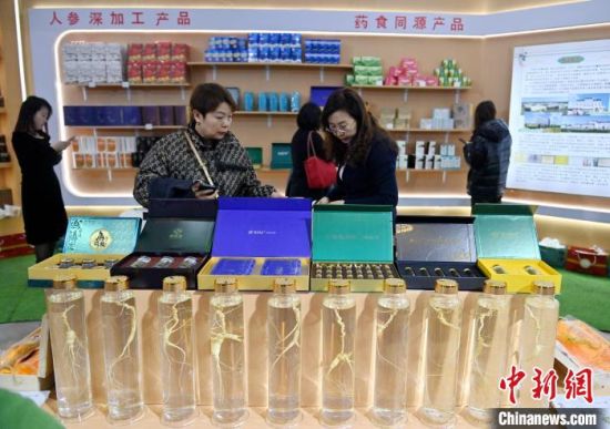 消費者在2024長春國際醫(yī)藥健康產業(yè)博覽會上選購人參產品。張瑤 攝