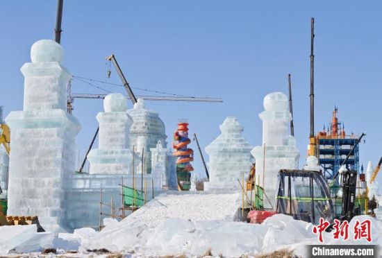 12月11日,吉林長春,長春冰雪新天地正在加速施工。 中新社記者 張瑤 攝