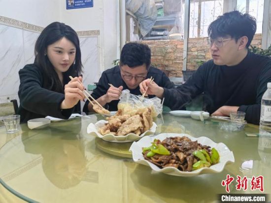 來自天津的游客趙瀟虹攜家人在吉林過年,一家人不僅品嘗鍋包肉,還對各餐館的鍋包肉進(jìn)行了對比!懊考也说奶攸c都不一樣,有的是酸甜口味占優(yōu),有的是肉片特別有嚼勁!