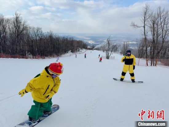 家長帶領兒童在吉林市雪場滑雪。 李蕓 攝