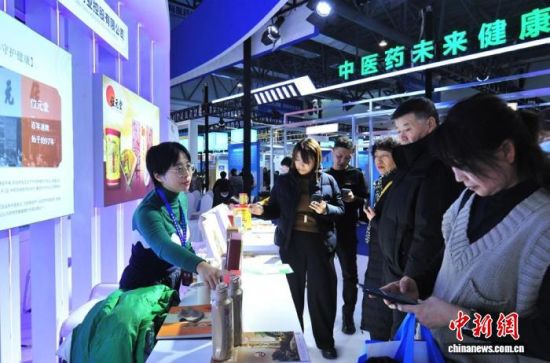 2024年12月8日,2024長春國際醫(yī)藥健康產業(yè)博覽會上,展商在推介商品。(資料圖) 張瑤 攝